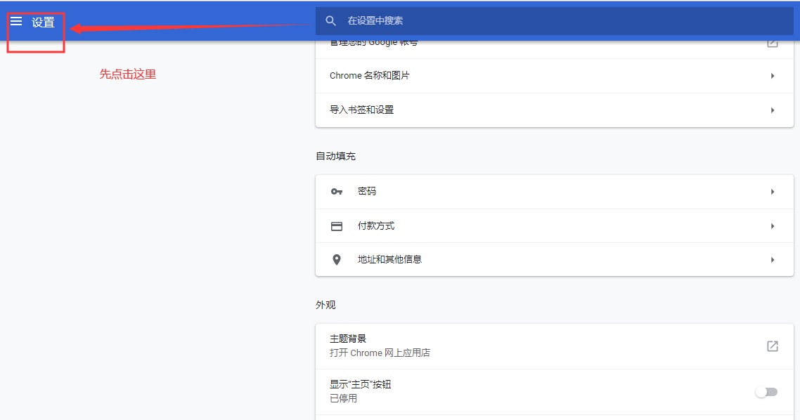 **1. 打开谷歌(Google Chrome)浏览器,找到设置(3个小点),如下图:**