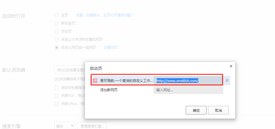 ### 1.7.5、QQ浏览器如何设置onekbit导航成为默认主页