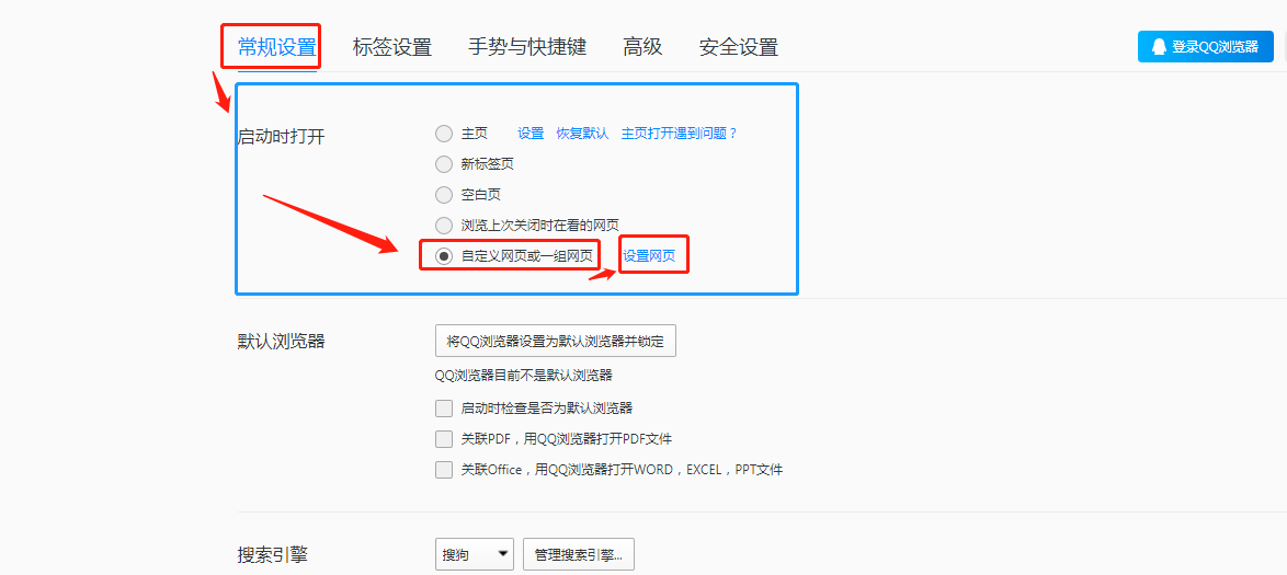 - 1.7.5、QQ浏览器设置主页