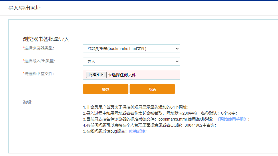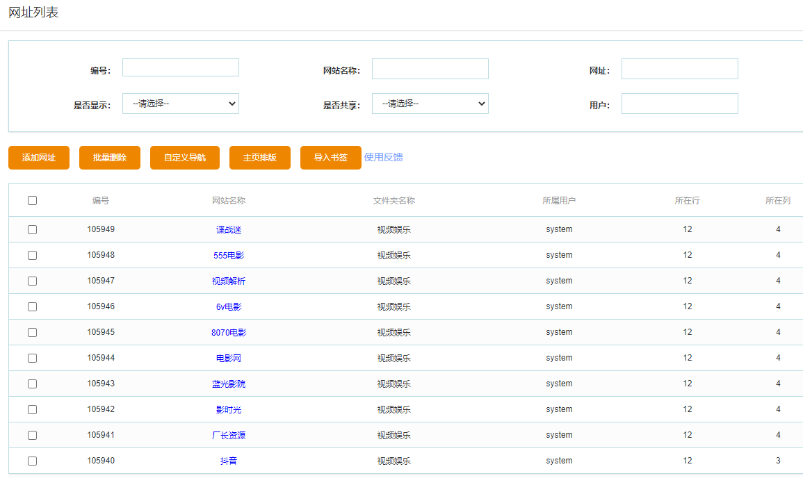 之后就可以提交了,提交后可以在列表页面查看导入的浏览器书签信息: