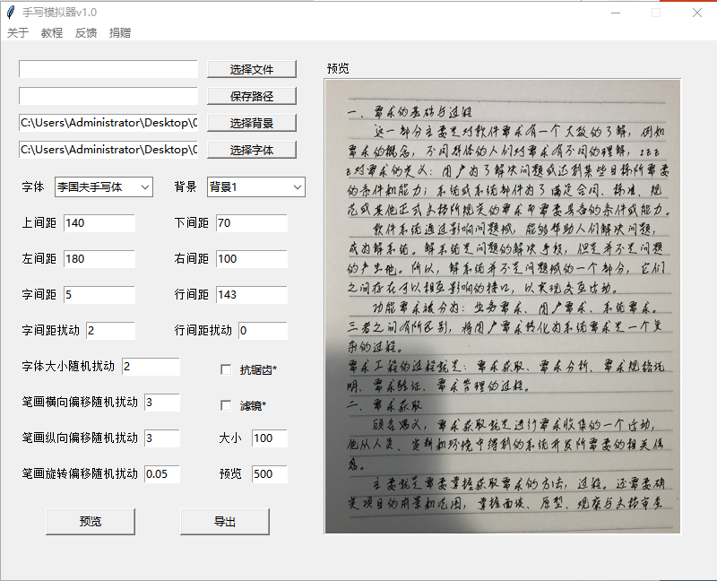 - 【WIN】手写字体生成器/文字转手写工具电脑软件,支持Word文档一键转手写,可换字体调节间距,永久免费!