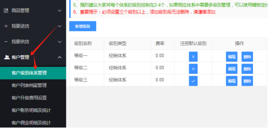 > 2、如果删除的等级,有客户刚好是该等级,那么该客户将会失去等级,而变成无等级状态,导致无法购买消费。