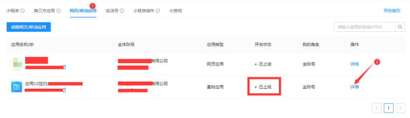 2.请确保您的支付宝商家开发者中心,[https://openhome.alipay.com/develop/manage](https://openhome.alipay.com/develop/manage)控制台-网页移动应用中,申请的支付已经通过审核。
