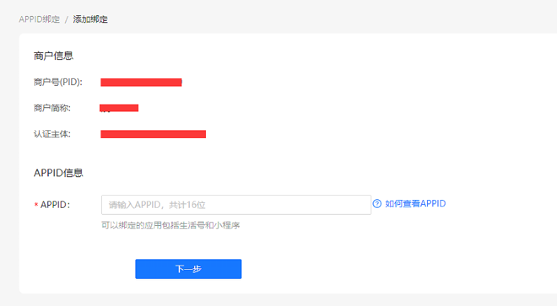 11.进入[支付宝商家平台 绑定APPID](https://b.alipay.com/page/account-manage-oc/bind/appIdBindList/addBind "支付宝商家平台 绑定APPID")appid为第3步时保存备用的APPID