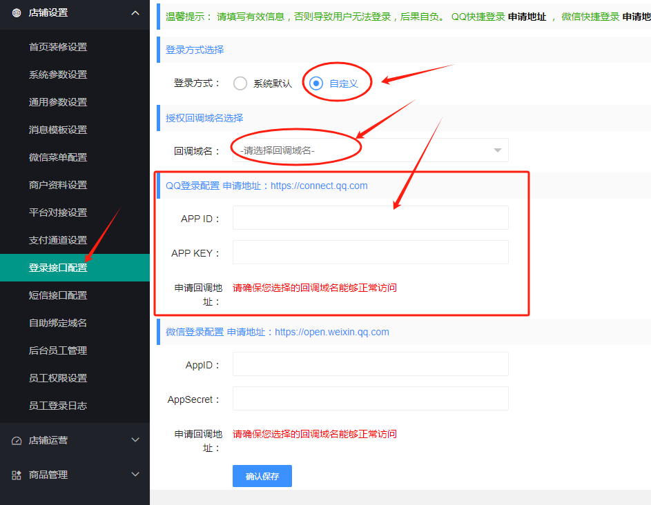 #### 4.进入网站后台,登陆接口配置:进入配置。