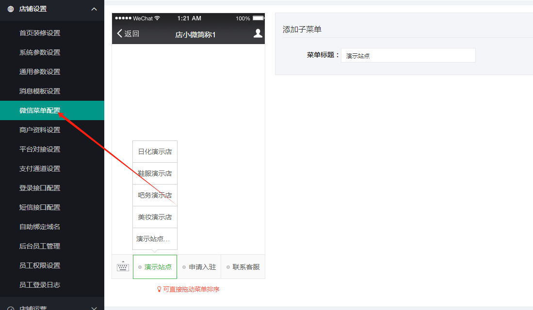 #### 7.至此,公众号已配置完成,可以在店铺设置-微信菜单设置中,管理公众号的菜单及自动回复等内容。
