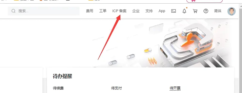 ### 1.进去阿里云官方并登录上自己的阿里云帐号,找到ICP备案,我们点击进去