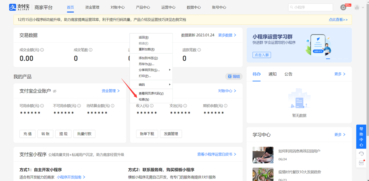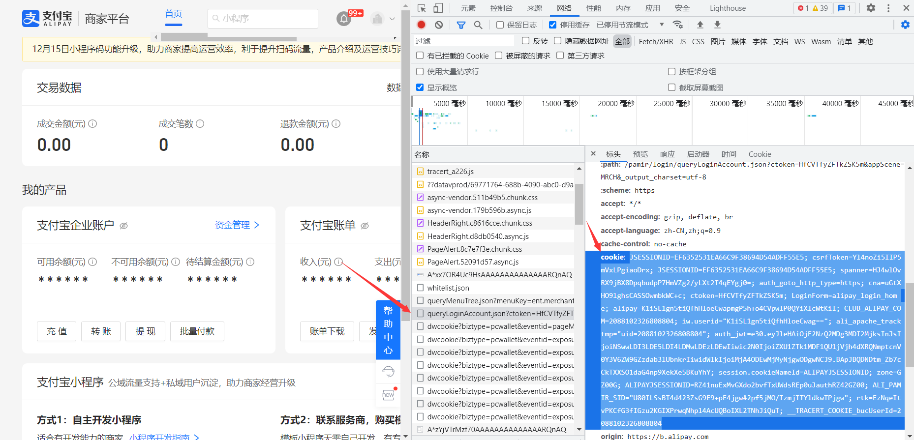 **或者可以手动抓取cookie,打开[https://b.alipay.com/page/portal/home](https://b.alipay.com/page/portal/home)扫码登录**