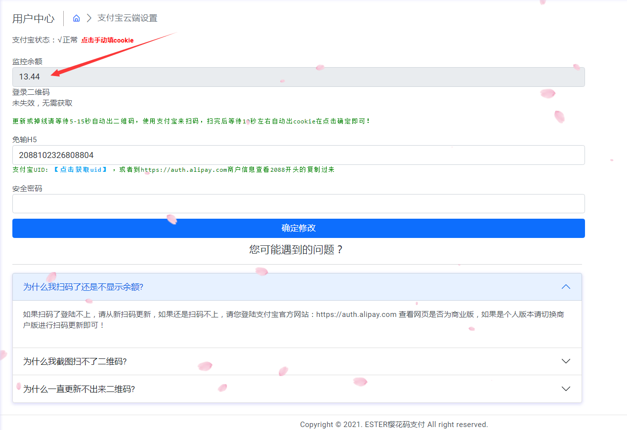 **支付宝扫码出来的2088开头的数字填写在免输H5里面(千万不能写错不然获取不到你的账户)**
