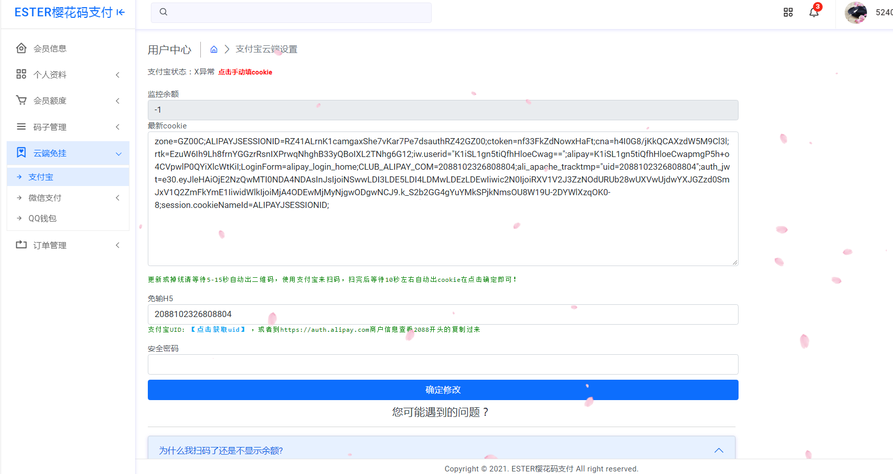 **复制此字段里的全部****cookie****,然后在支付宝免挂通道内有个手动填写cookie,粘贴上去即可。**