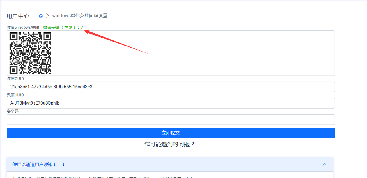 微信不显示云端在线的时候 一定要等够2分钟时间,期间不要二次提交页面,否则无法登陆成功