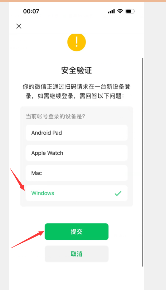 **提交之后请等待一分钟,手机微信会出现windows微信已登录**