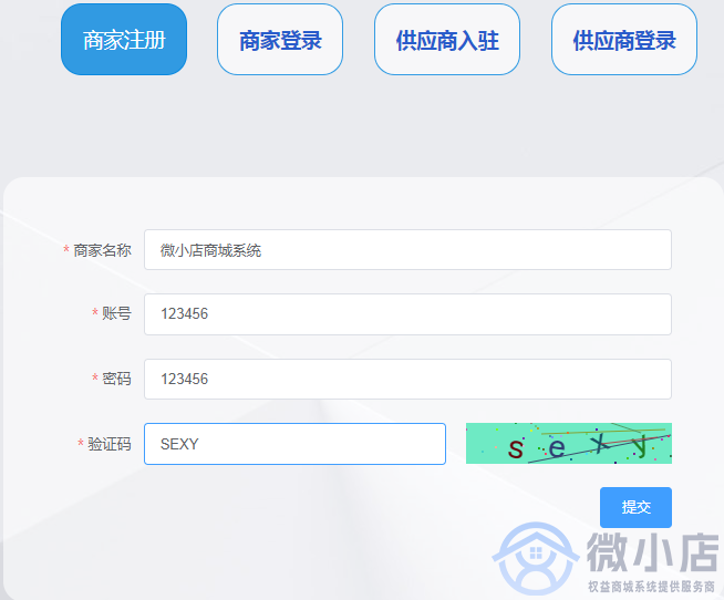 ##### 2.进入到商家注册页面。输入名称,账号密码并注册聚比价的商家账户。