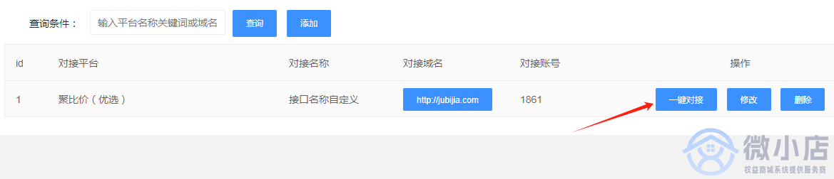 ##### 6.在列表中的右边,点击一键对接按钮,进入到对接页面。
