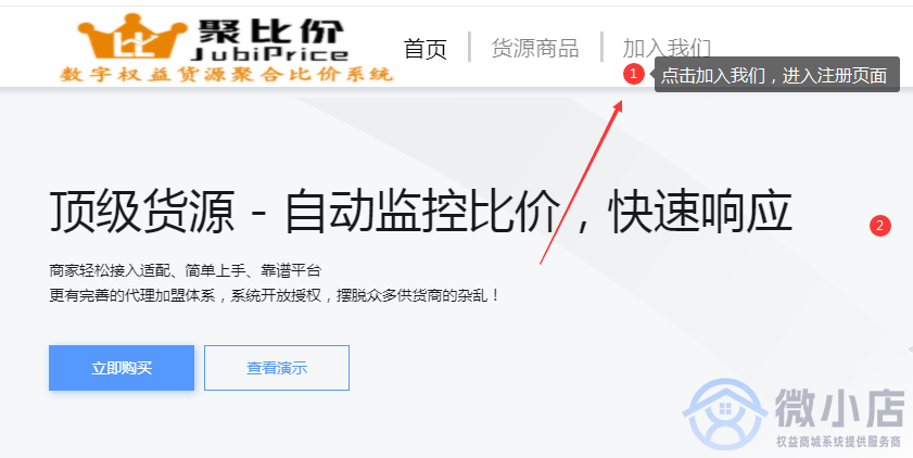 ##### 1.打开【[聚比价官网](http://jubijia.com/#/join?id=1861 "聚比价官网")】,并点击加入我们,进入注册页面。