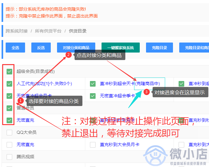 ##### 7.选中要对接的分类,点击一键对接分类和商品。