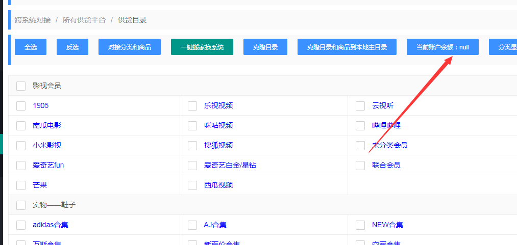 对接卡卡云系统的货源,只显示目录,但是不显示余额,是因为货源方没有加IP白名单。
