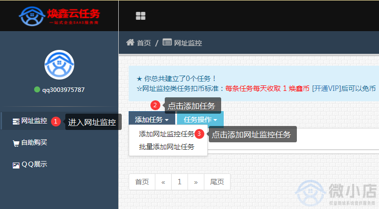 注册并登陆云任务系统后,进入【网址监控】页面,点击添加网址监控任务。
