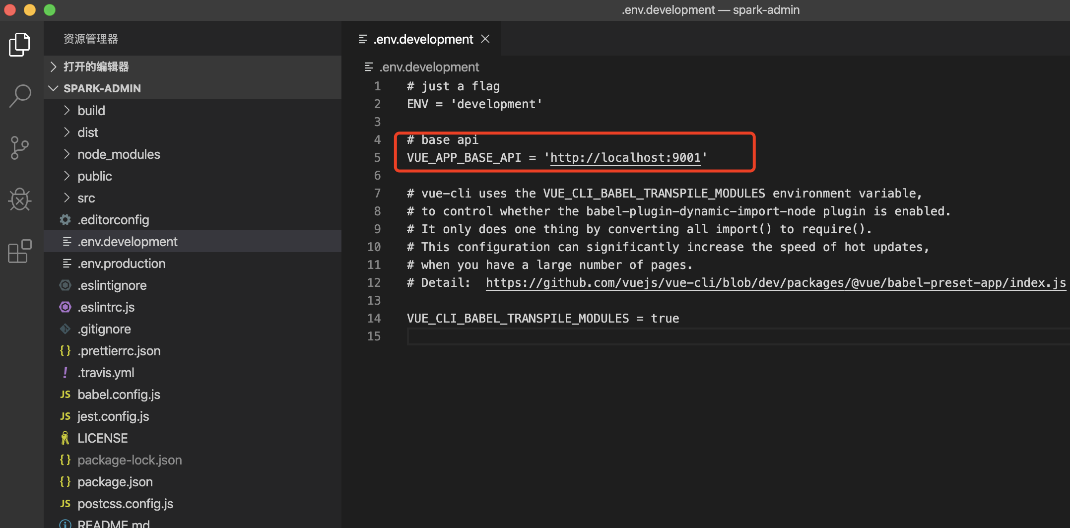 修改配置文件 .env.development 为开发环境配置,.env.production 为线上环境配置