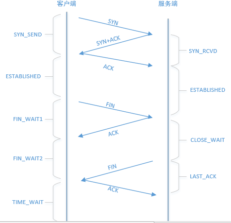 上图中给出的是客户端主动关闭连接,当然服务端也可以主动关闭连接。主动关闭连接的那一端会出现`TIME_WAIT`状态,被动关闭连接的那一端会出现`CLOSE_WAIT`状态。