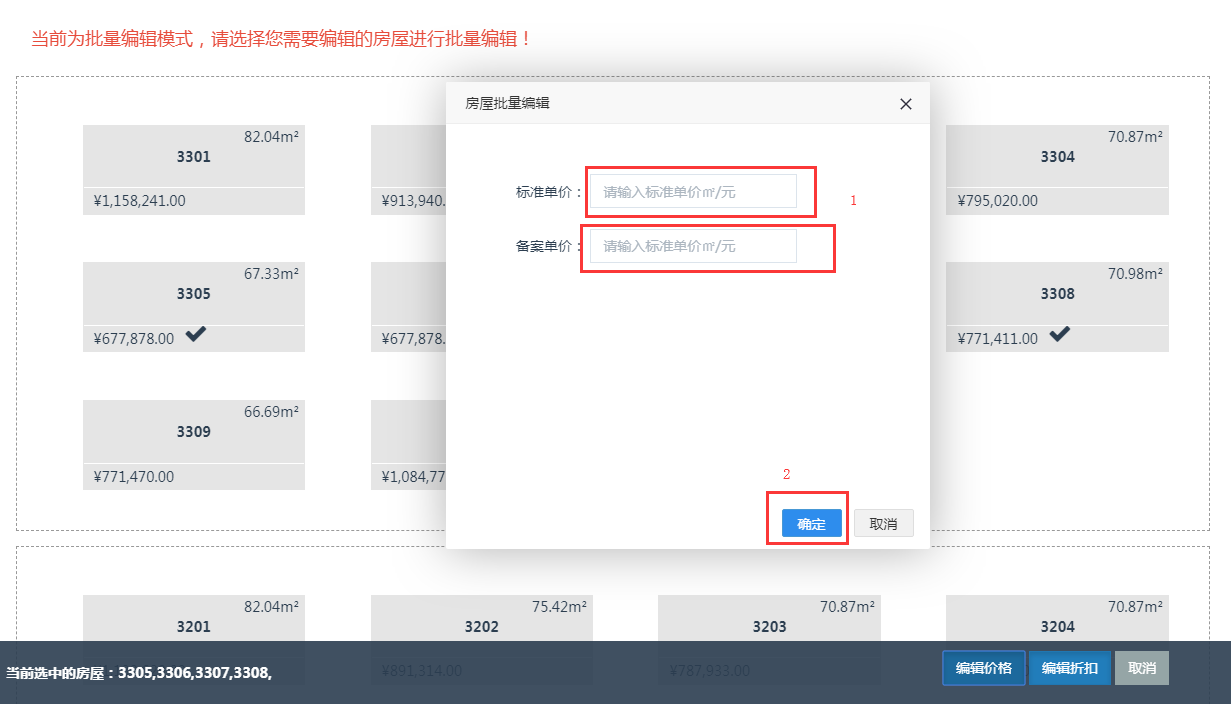 2.点击批量编辑总价及折扣按钮