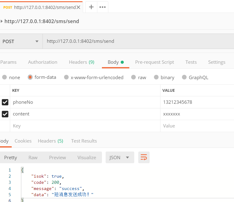 return AjaxResponse.success("短消息发送成功!");