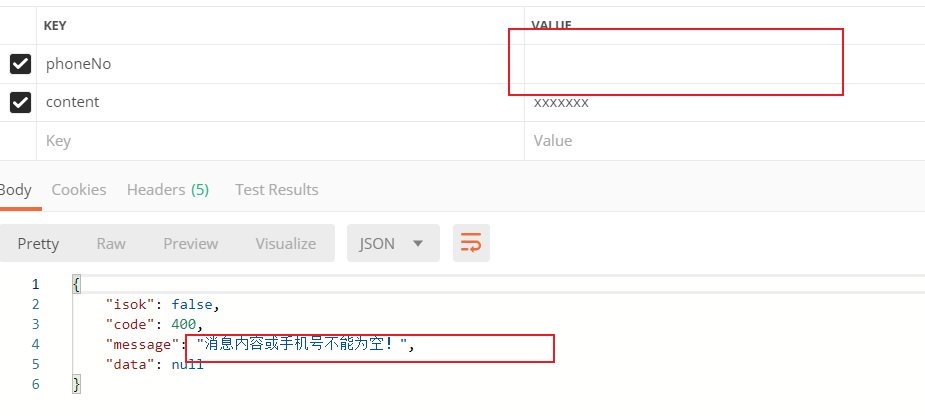 "消息内容或手机号不能为空!");