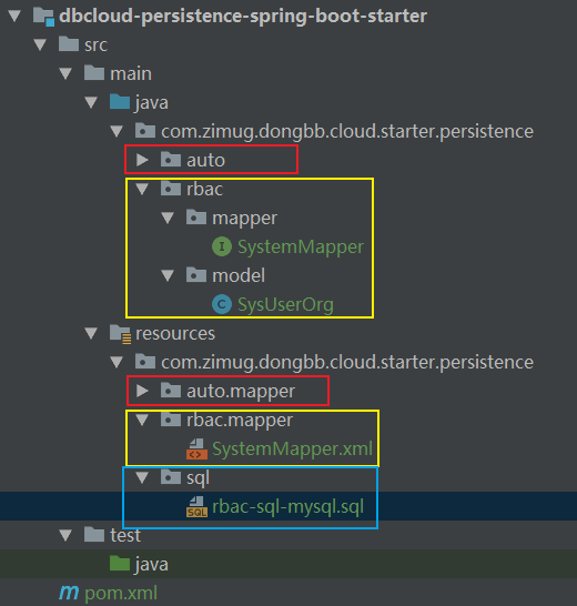 * 第三部分:黄色的部分,是从dongbb单体应用项目迁移过来的。只有三个文件,把xml和java类里面的package名改一改即可。