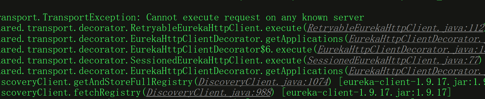 * 碰上这个报错,第一时间要取检查defaultZone配置的Url是否正确