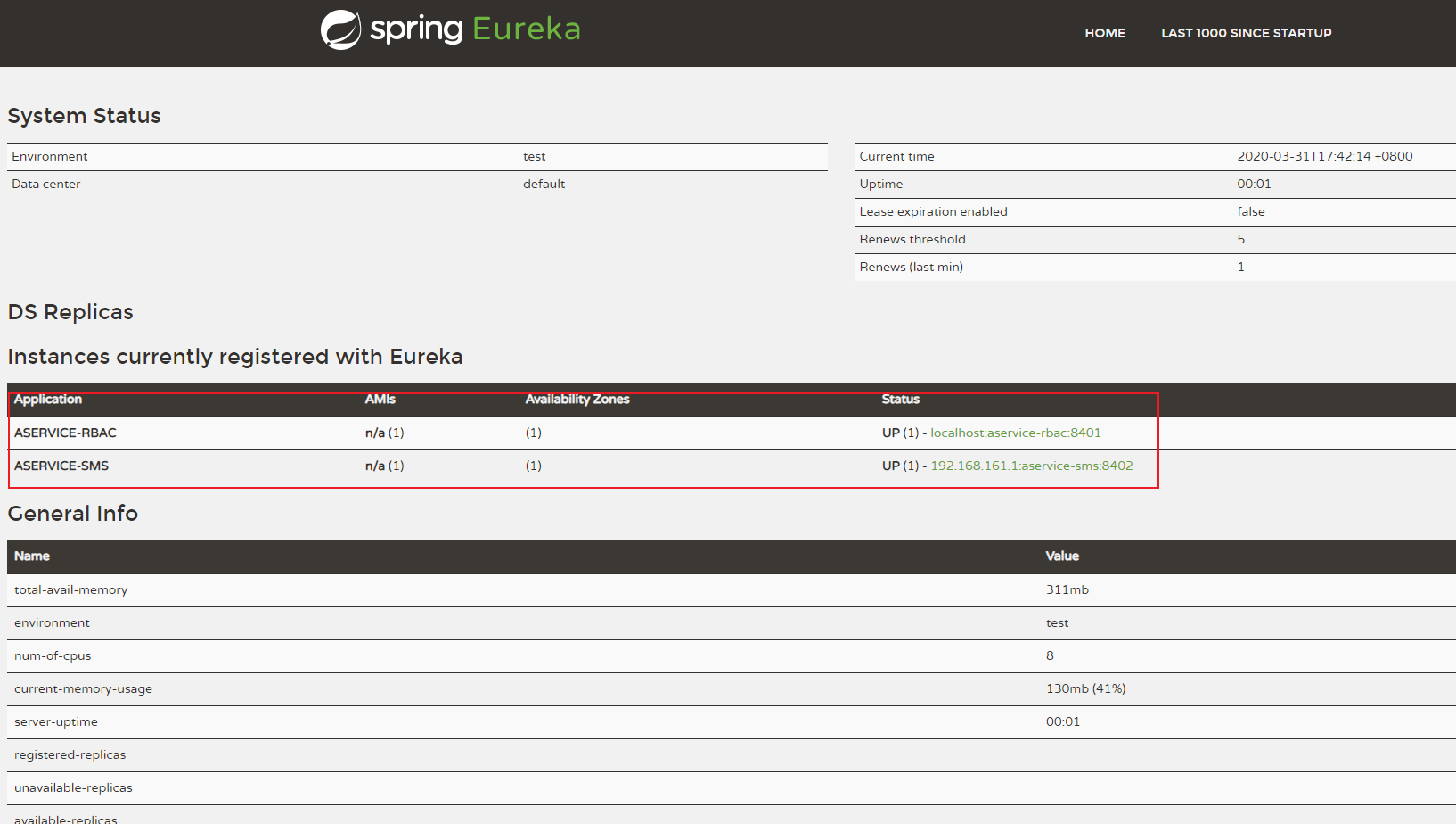 * 注意eureka客户端:`http://localhost:8761/eureka/eureka/`,有两个eureka。第一个eureka是`server.servlet.context-path: /eureka`。可以通过配置改变的;第二个eureka是服务注册的服务端点。