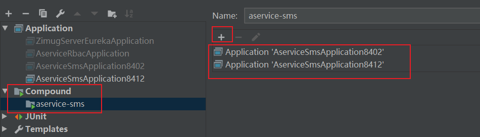 这样当我们启动Compound:aservice-sms的时候,8402和8412端口的微服务应用就一起启动了。