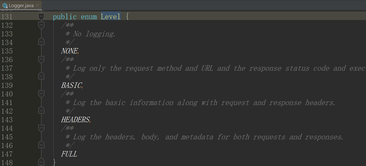 因为我们的微服务调用,都是在服务之间进行的。不是我们传统意义上的,从浏览器请求服务,所以当服务请求出现异常的时候,我们需要查看服务的HTTP详细调用信息。为此Feign为我们提供了日志增强接口。