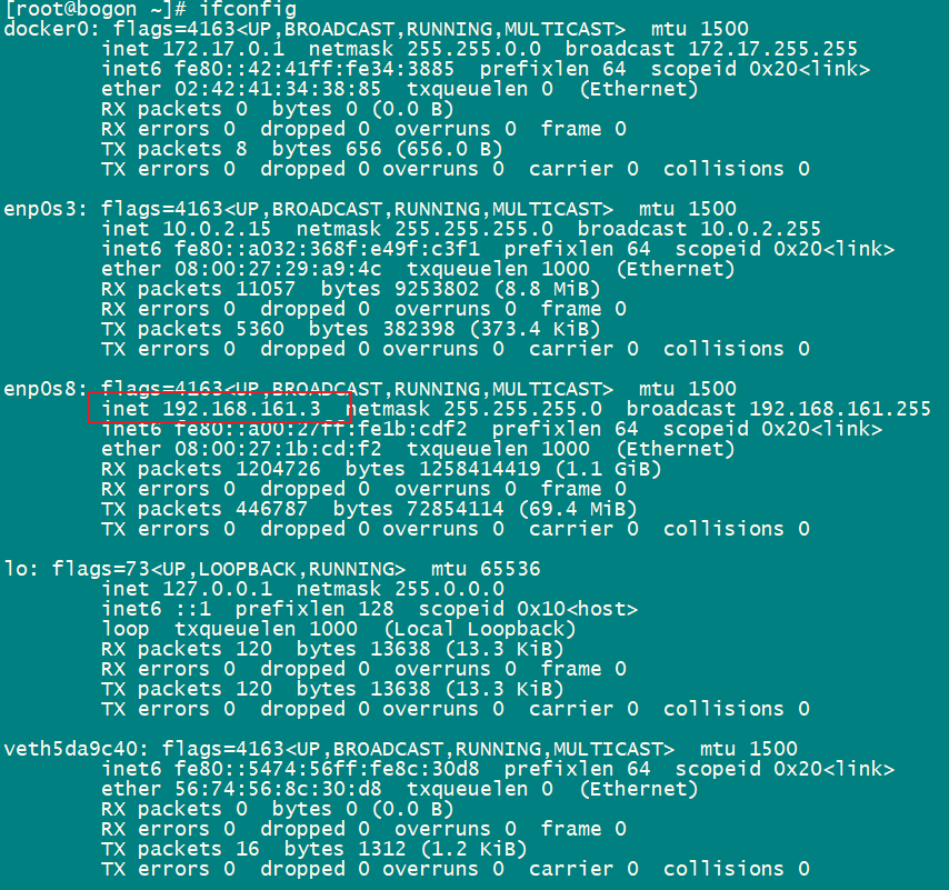 * enp0s8才是我们真正需要使用的本地网络。