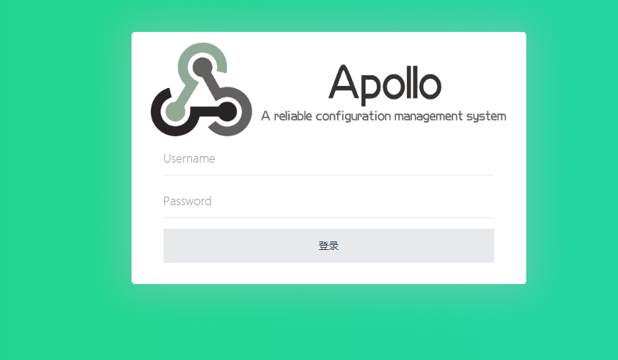 输入用户名、密码 apollo/admin,登陆成功就表示我们安装成功了。