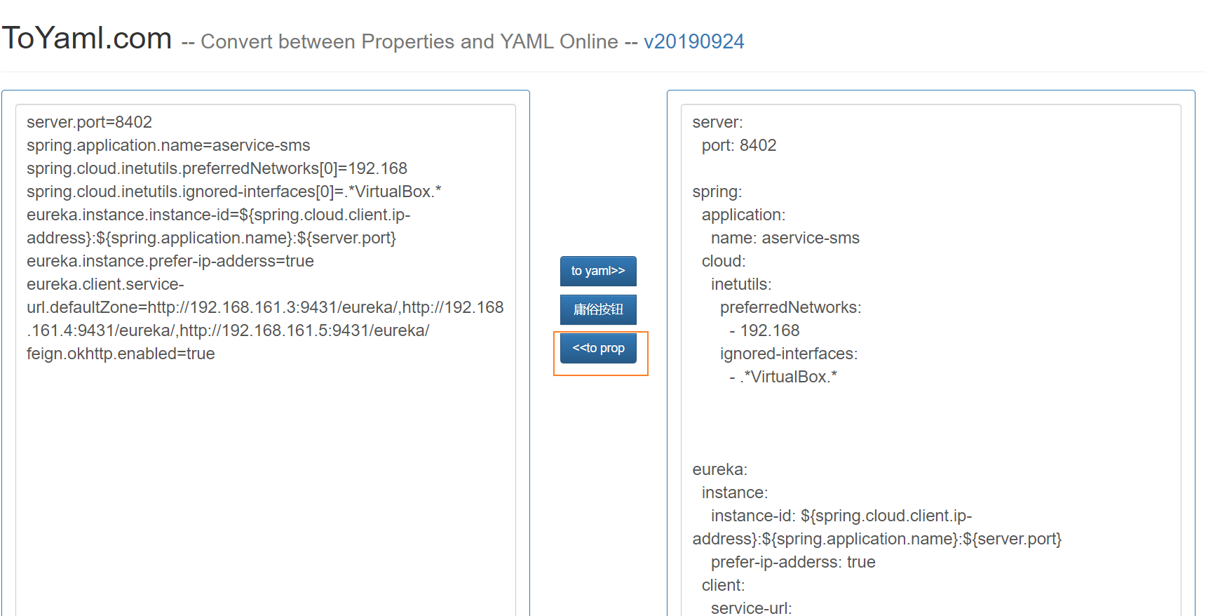 因为我们要进行集中的配置管理,所以需要把图中红色部分的配置放到apollo服务配置中心里面进行发布。我们的项目是使用yaml进行配置管理的,apollo配置中心目前只支持properties格式,所以我们需要转换一下:[可以使用这个网址在线转换](https://www.toyaml.com/index.html)