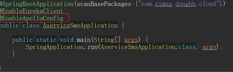在应用的启动类添加`@EnableApolloConfig`注解即可: