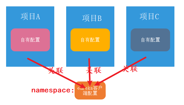 * 我们可以把公共配置单独抽取出来,形成一个namespace,比如:eureka客户端配置