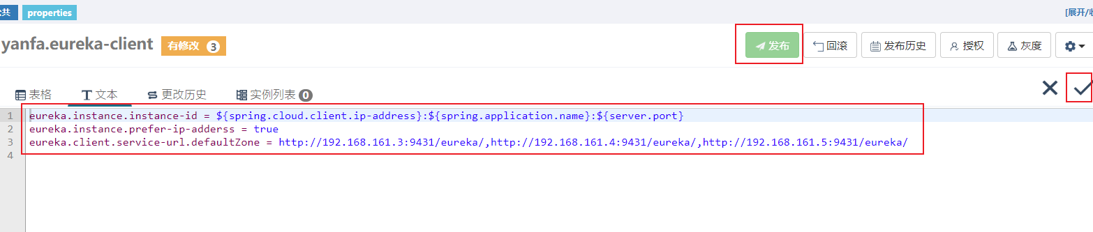并且将namespace:yanfa.eureka-client的配置项发布。