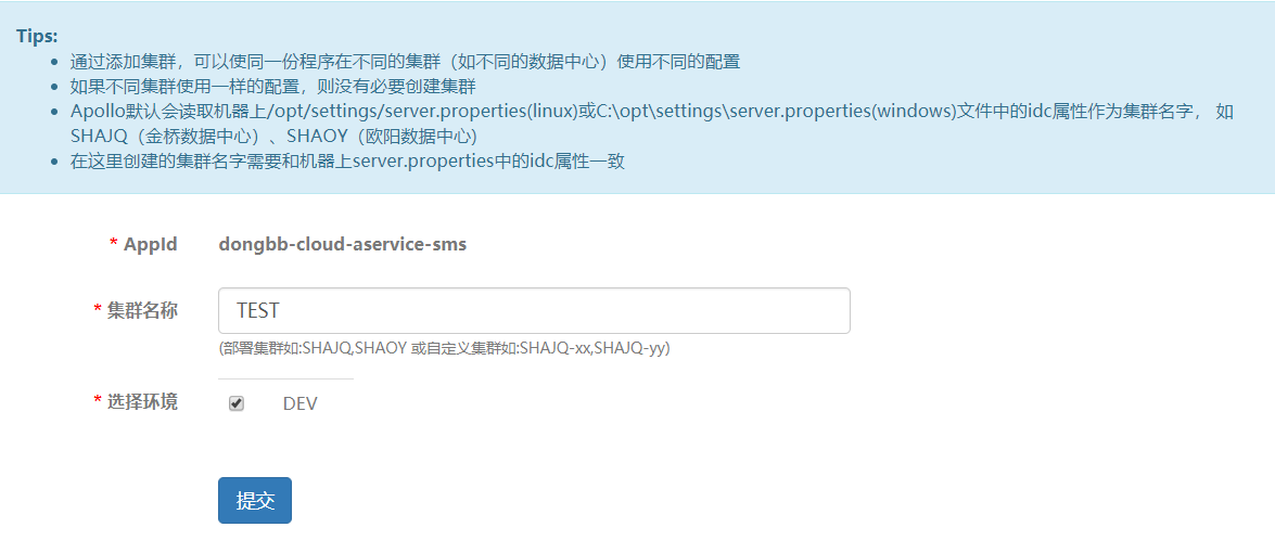 所以:**apollo配置中心要为项目增加集群,一定是项目在不同集群(机房)部署的时候配置不同。如果应用在不同的集群(机房)可以使用相同的配置,就没必要为项目添加集群。**