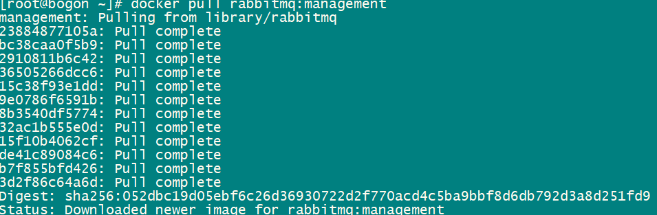[root@bogon ~]# docker run -d -p 5672:5672 -p 15672:15672 --name rabbitmq rabbitmq:management