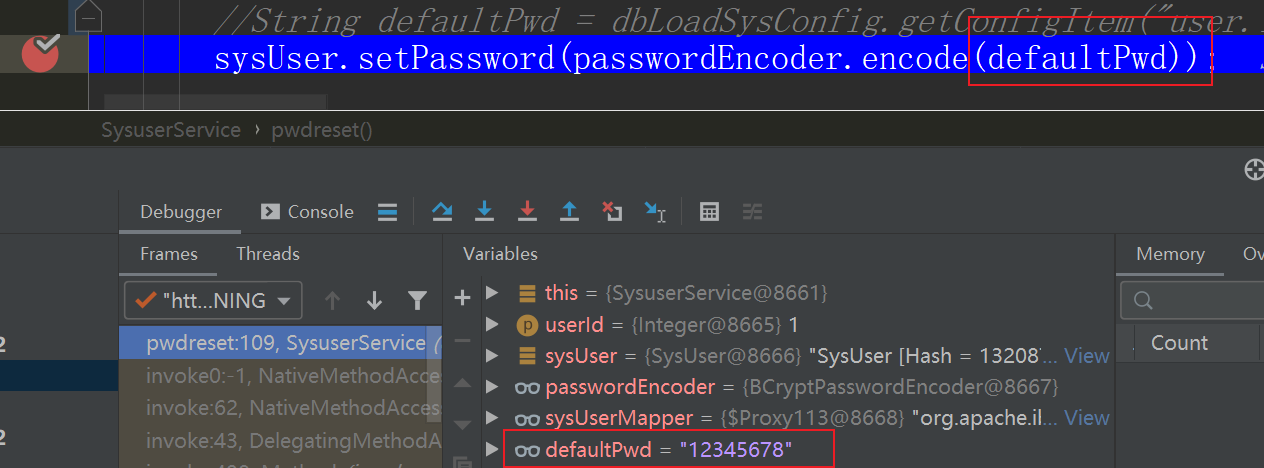 sysUser.setPassword(passwordEncoder.encode(defaultPwd));