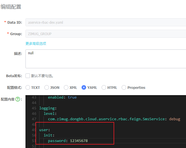 去nacos配置中心修改`user.init.password`的值为Abcd1234,再次通过postman发送请求