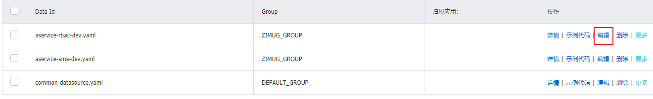 * 在配置列表页面,选择要进行配置变更灰度发布的配置文件进行"编辑"修改