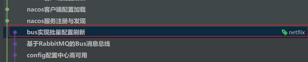 所以本节的代码是在:《bus实现批量配置刷新》章节的基础上完成的。要想学习好本章节,必须掌握netflix分支之前的内容。