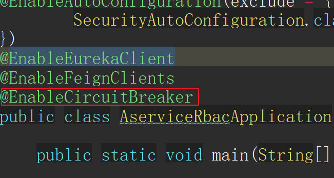 * 在服务入口启动类上面加上`@EnableCircuitBreaker`注解
