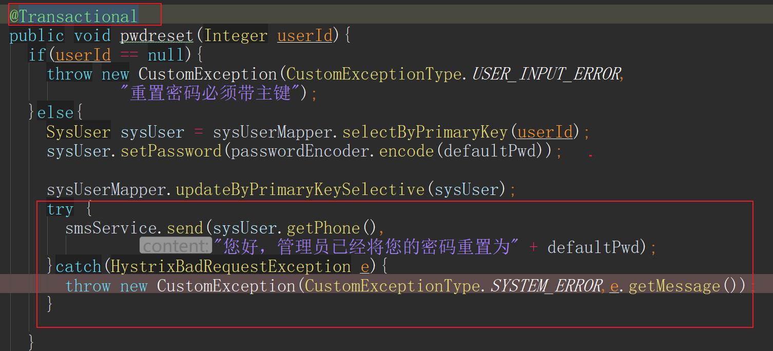 ### 2.3.在代码调用的位置拦截异常,触发数据库事务回滚