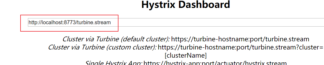 * `turbine.cluster-name-expression`参数指定了集群名称为`default`,当我们服务数量非常多的时候,可以启动多个 Turbine 服务来构建不同的聚合集群,而该参数可以用来区分这些不同的聚合集群,同时该参数值可以在 Hystrix 仪表盘中用来定位不同的聚合集群,只需要在 Hystrix Stream 的 URL 中通过 cluster 参数来指定;注意:`new String("default")`这个一定要用 String 来包一下,否则启动的时候会抛出异常: