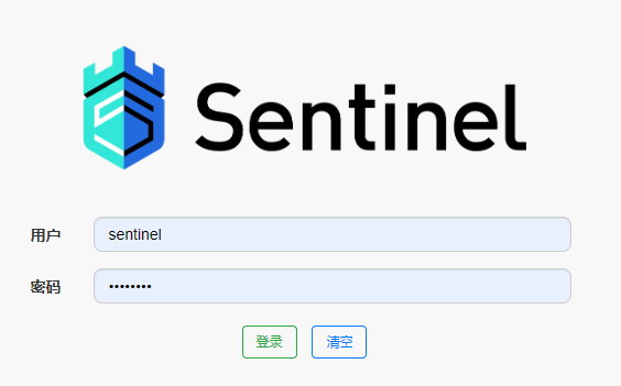 从 Sentinel 1.6.0 起,Sentinel 控制台引入基本的**登录**功能,默认用户名和密码都是`sentinel`。当然也可以通过JVM参数的方式进行修改。