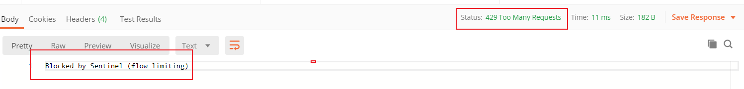 * 流控效果:快速失败。很简单的说就是达到限流标准后,请求就被拦截,直接失败。(HTTP状态码:429 too many request)