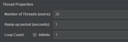 参考Hystrix章节的《Jemeter模拟触发服务熔断》创建Jemeter接口测试用例。为了更明显的触发流控规则:配置一秒钟发送30个请求。